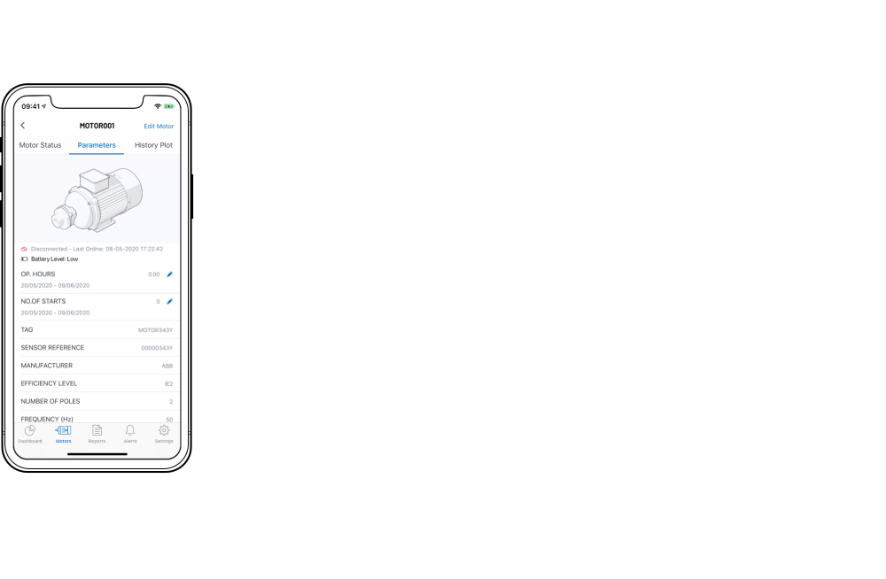 The Parameters screen, both in the mobile and web applications, displays the battery status. The device will send an email and create a push notification in the mobile app in a low-battery situation.