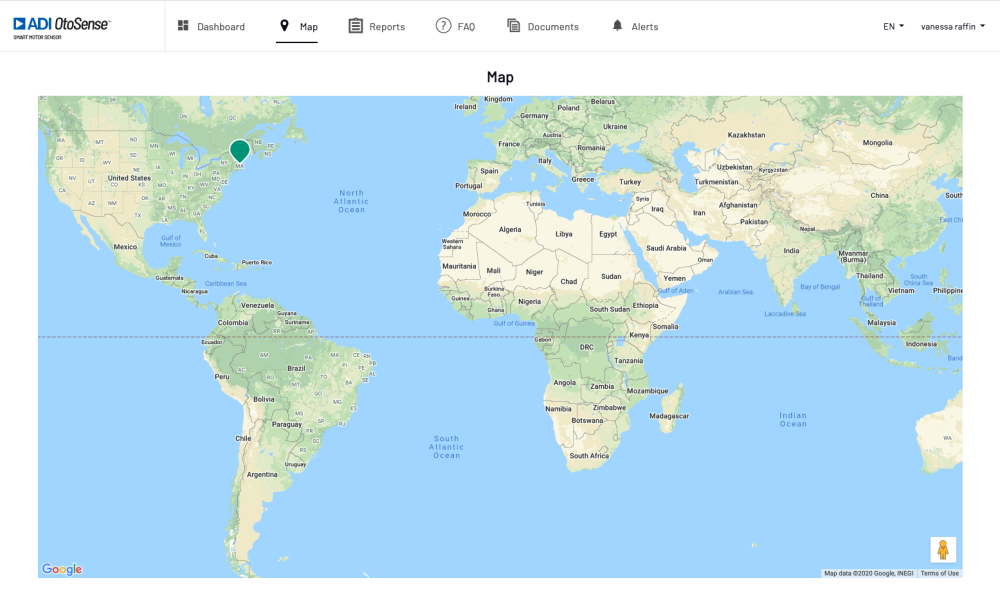 La pantalla de Mapa (Figura 14) identifica con exactitud la ubicación o ubicaciones donde están instalados motores equipados con dispositivos SMS.