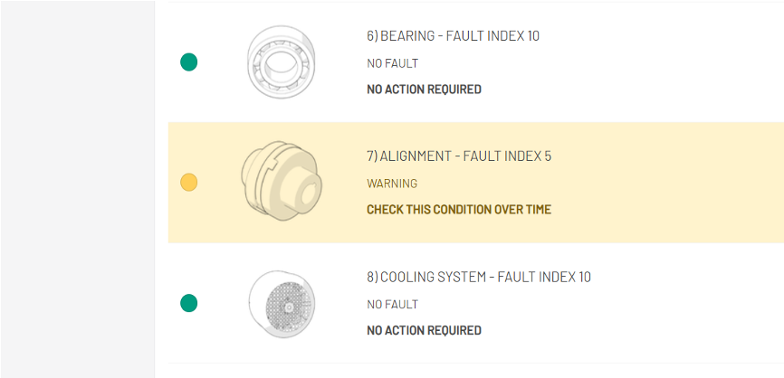 Faites défiler la liste jusqu’à ce que vous trouviez le composant qui est tombé en panne – rouge (Figure 6) ou le composant qui pourrait nécessiter une maintenance prochainement – jaune. (Figure 7).
