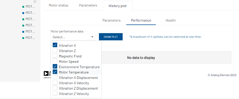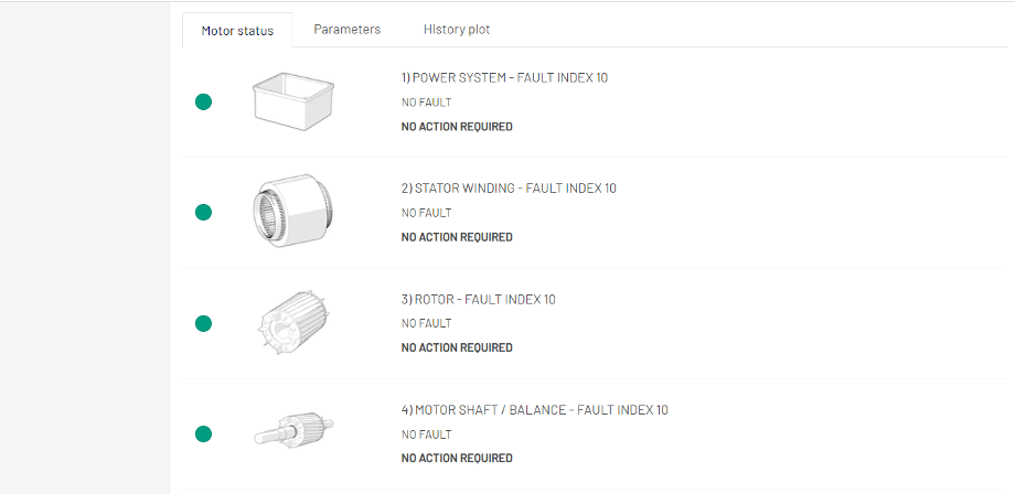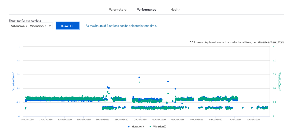 Le personnel de maintenance trouvera utile de visualiser l’historique d’une fonction particulière (vibrations, champs magnétiques, etc.) dans le moteur, afin de déterminer si des problèmes peuvent survenir.