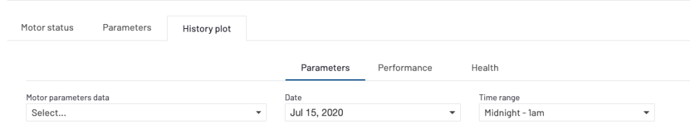 Sélectionnez les données des paramètres du moteur pour lesquelles vous souhaitez vérifier les données historiques, ainsi qu’une plage de temps. La plage sélectionnée s’affiche sous forme de graphique (Figure 11a – Sous-onglet Paramètres).