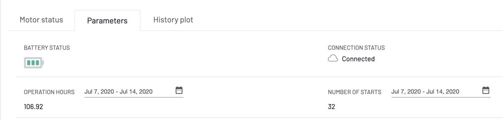 Cliquez sur l’icône calendrier à côté de “Heures de fonctionnement” et “Nombre de démarrages” (Figures 9-10) pour afficher une plage quotidienne, hebdomadaire ou mensuelle des heures de fonctionnement du moteur ou du nombre de démarrages du moteur.